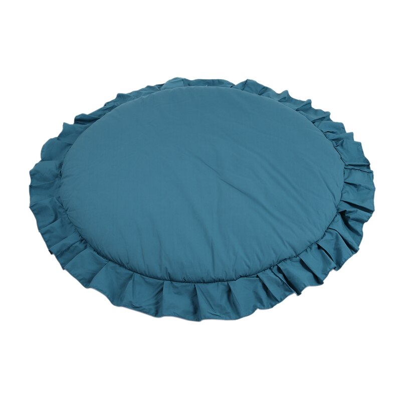Mjuk babylekmatta som andas rund volang mjuk krypdyna golvmatta i bomull ,1 st ,41.3in, blå